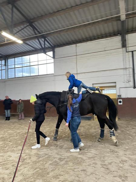 Beim Voltigieren in der Halle auf den Pferden Grimaldo und La Katharina zeigten die Kinder sehr viel Geschick und das <Pony Nusstraum genoss die ausgiebigen Putz- und Kuscheleinheiten der Kinder.