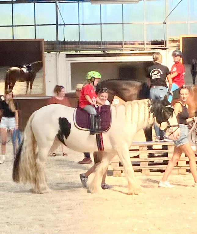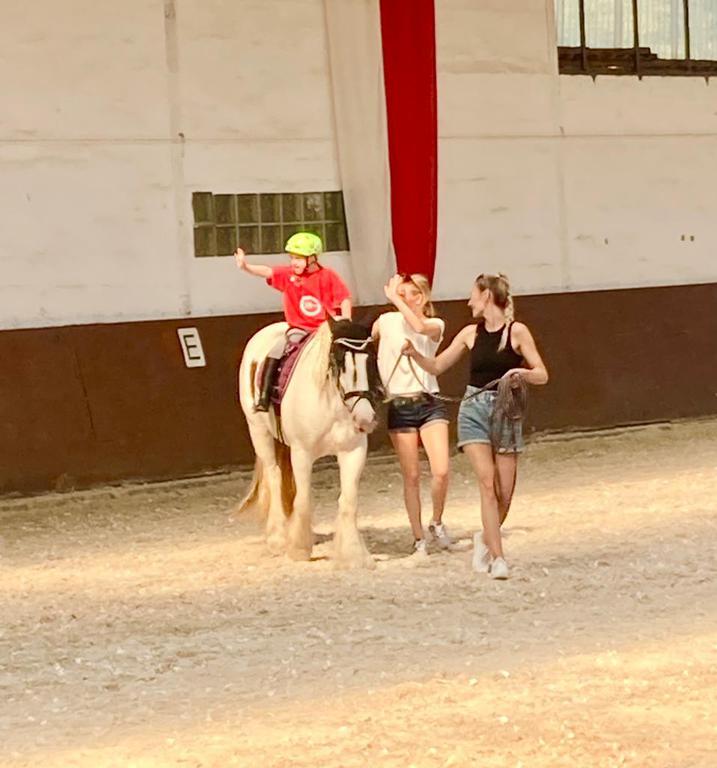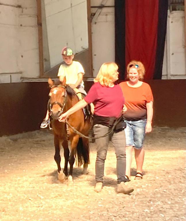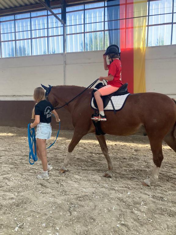 Bei trockenem Wetter freuten sich die Kinder wirklich sehr, auch eine Runde auf dem Rücken der Pferde Ritchie, Champ, Daylight, Bambi, Don und Flocke durch das Bodenfeld reiten zu dürfen.